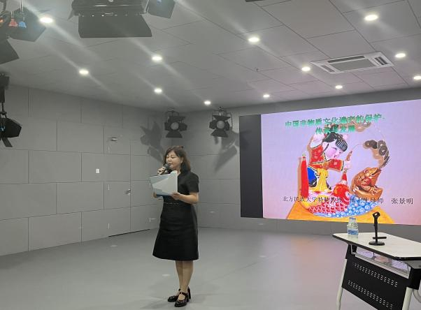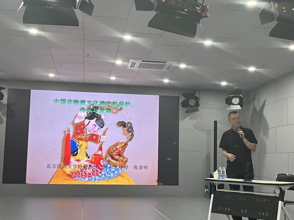 讲座邀请到了北方民族大学特聘教授、博士生导师张景明教授做了主题讲座,张教授主要从非物质文化遗产概念的理解、非物质文化遗产的保护与传承、非物质文化遗产的发展趋势三个方面进行了讲授,同时结合具体的案例对非物质文化遗产的保护传承与活化利用做了剖析。