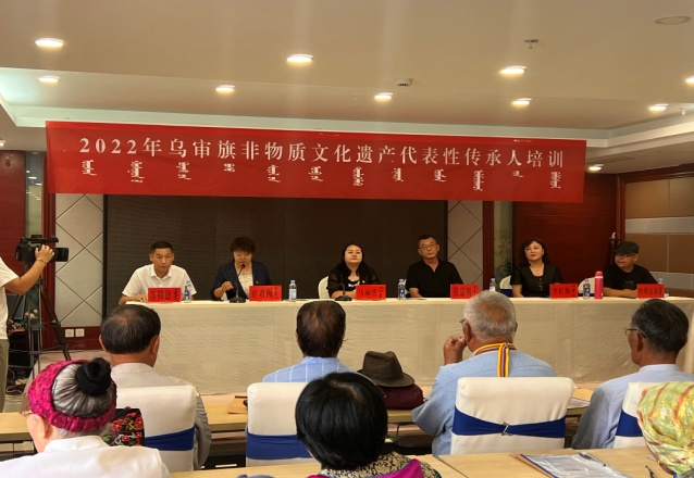 7月5日上午,团队一行赴乌审旗参加乌审旗2022年度非物质遗产代表性传承人培训班开班仪式。仪式由乌审旗文化和旅游局副局长崔君梅主持,乌审旗副旗长马丽杰致辞中讲:“乌审旗是萨拉乌苏文化的重要发源地之一,非物质文化遗产资源丰富,孕育出了优秀的民间艺术。要珍惜此次培训机会,切实提高传承能力和技艺水平,进一步加强我旗非遗文化保护、传承与发展,助推我旗文化事业高质量发展”。开班仪式结束后,张景明教授为现场130余名非物质遗产代表性传承人开启了《中国非物质文化遗产的保护传承与发展》的专题讲座。